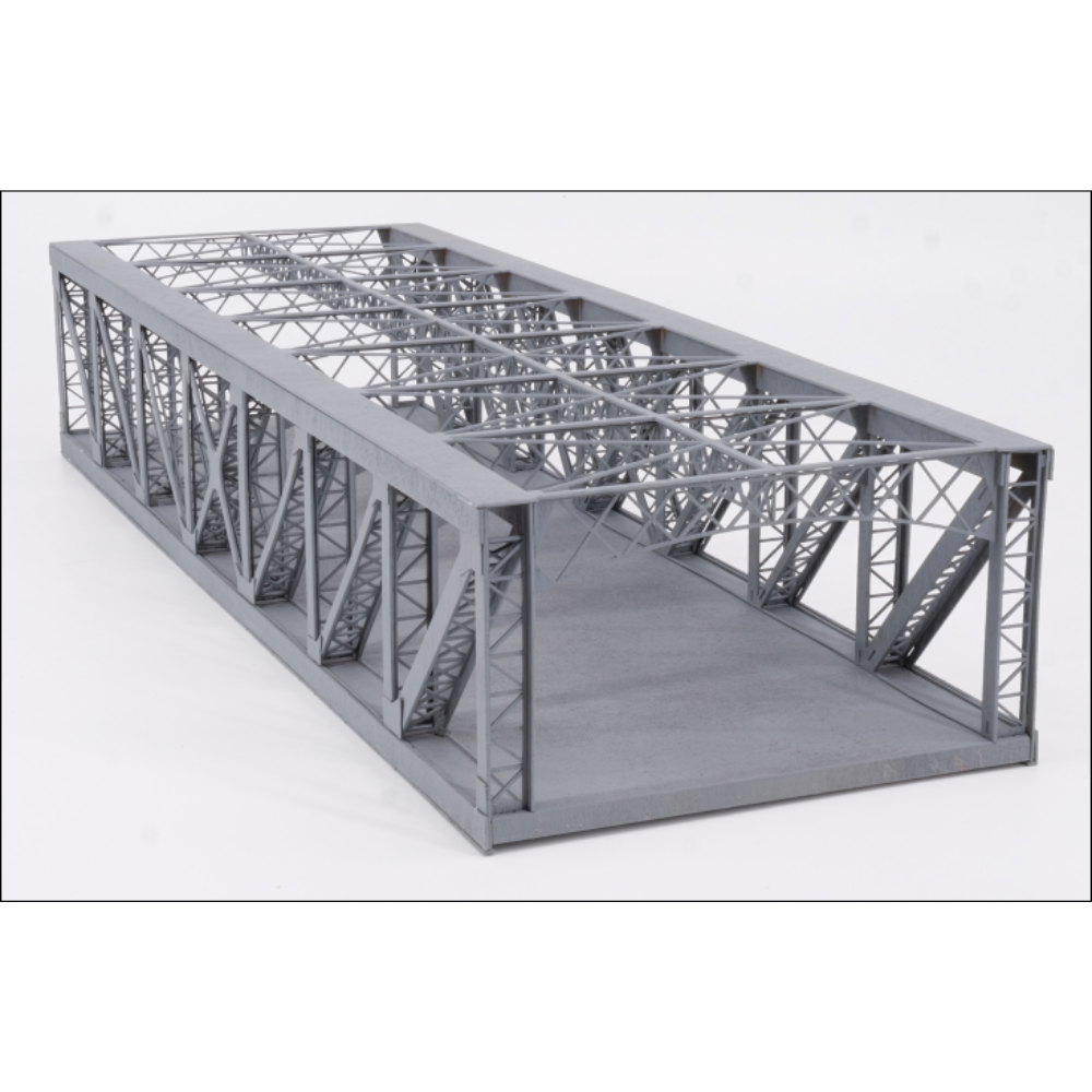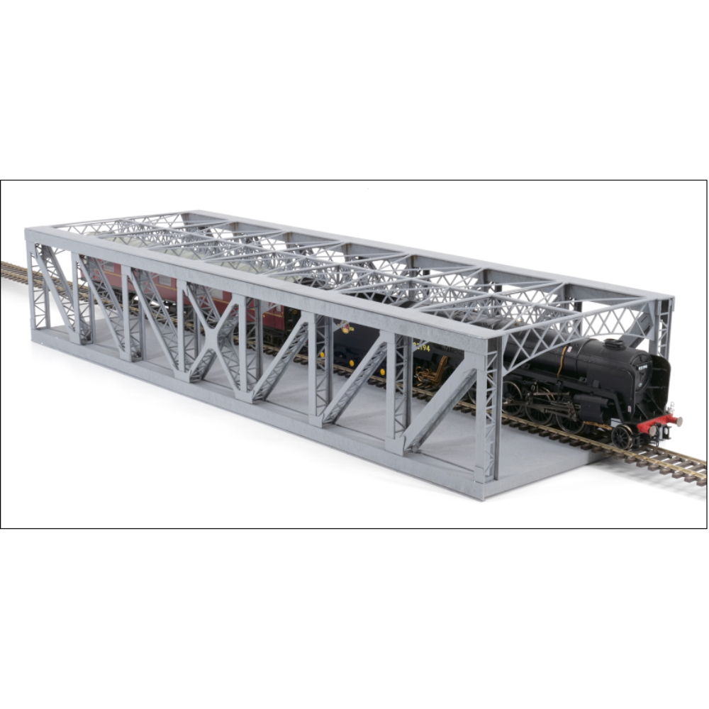 The total size of the bridge is 435mm x 140mm. The total height is 83mm and the design caters for a double track main line to be added inside the Birdcage Frame.